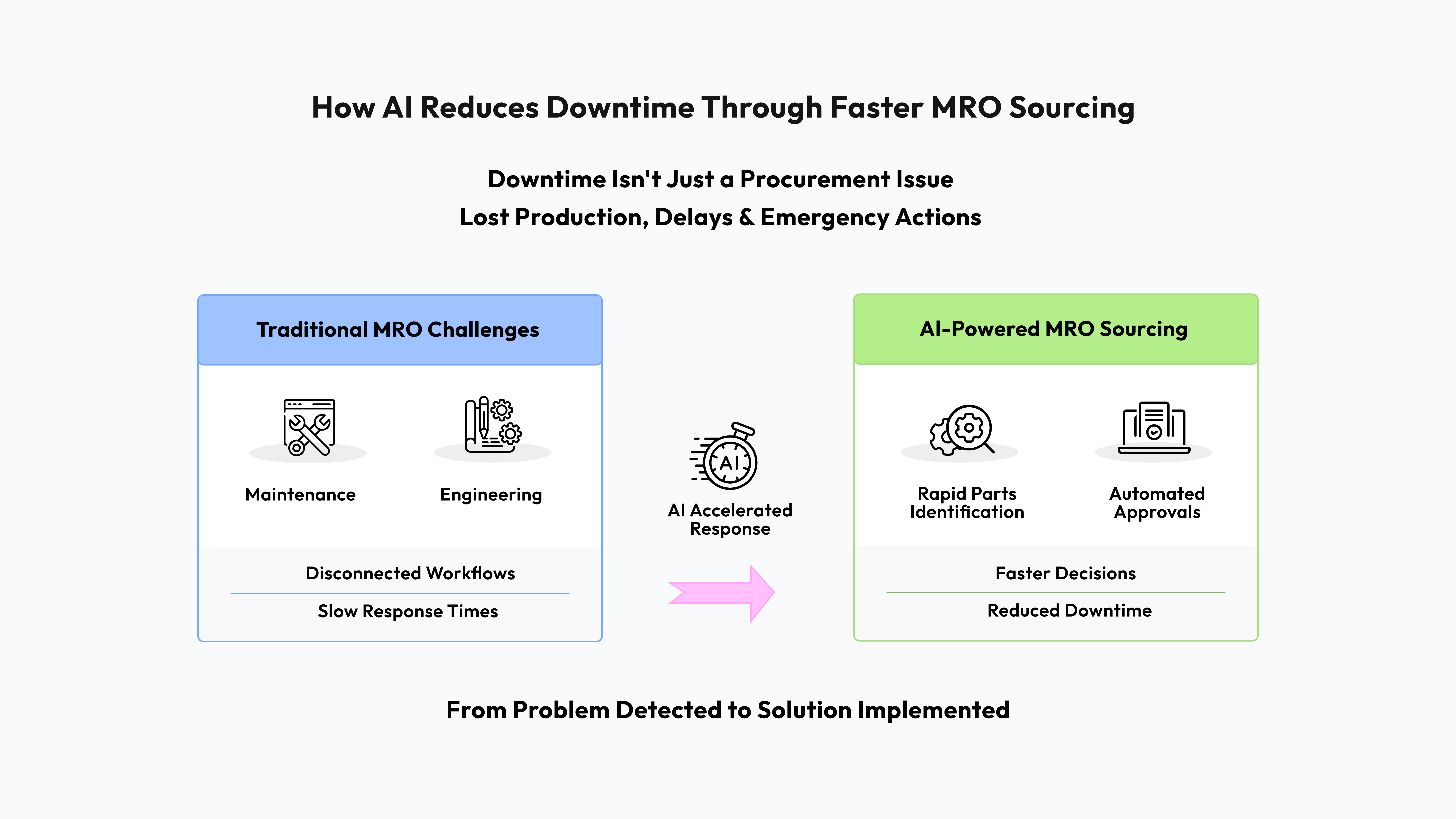 AI reduces downtime by connecting multiple sourcing stages, not just accelerating one.