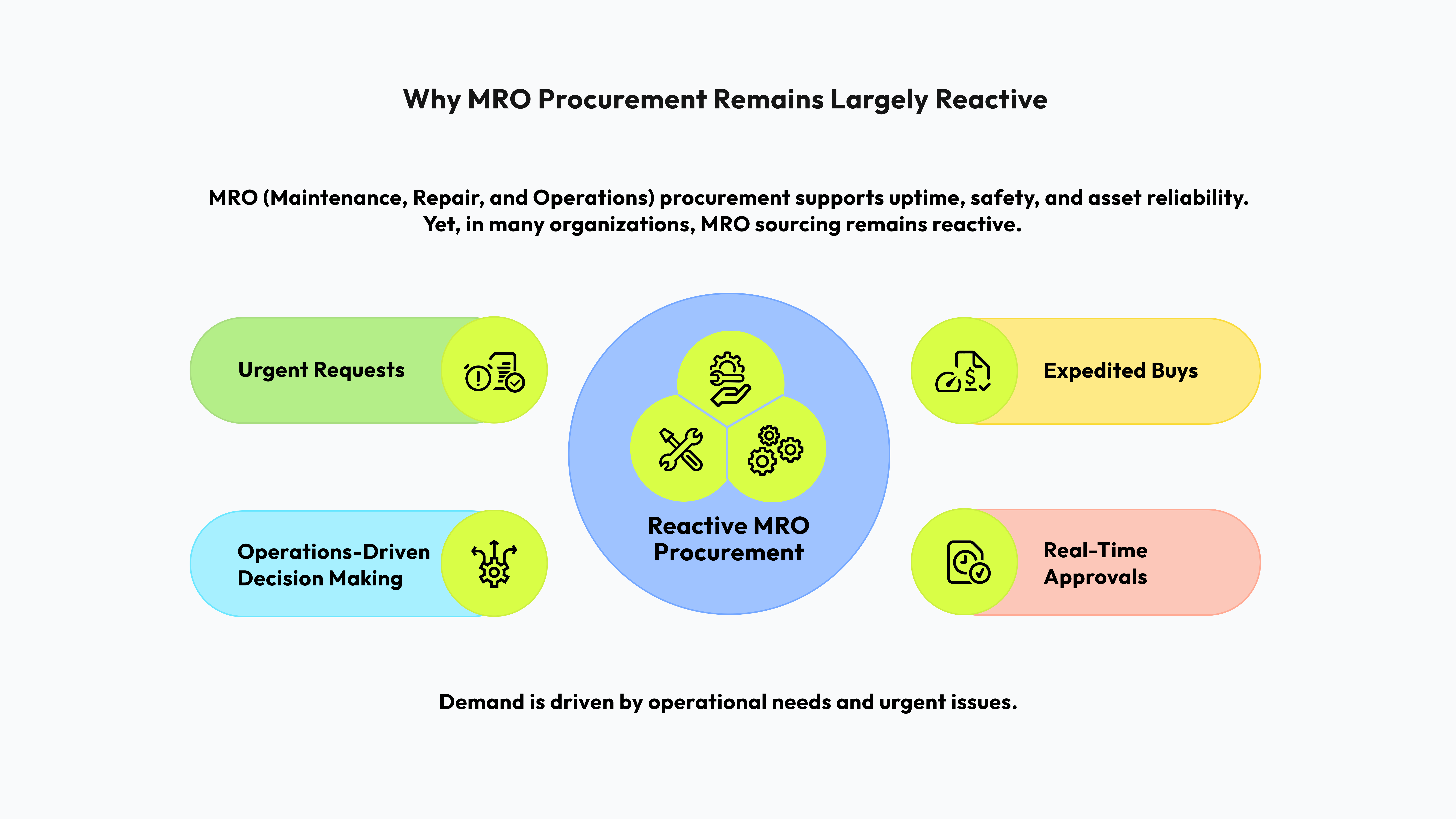 This dynamic is often described as reactive. In reality, it reflects how MRO demand emerges, how decisions are made close to operations, and how procurement systems are structured. Similar to challenges seen in IT and technology categories, the opportunity lies in understanding where procurement already works well and where additional structure enables greater foresight without compromising speed.